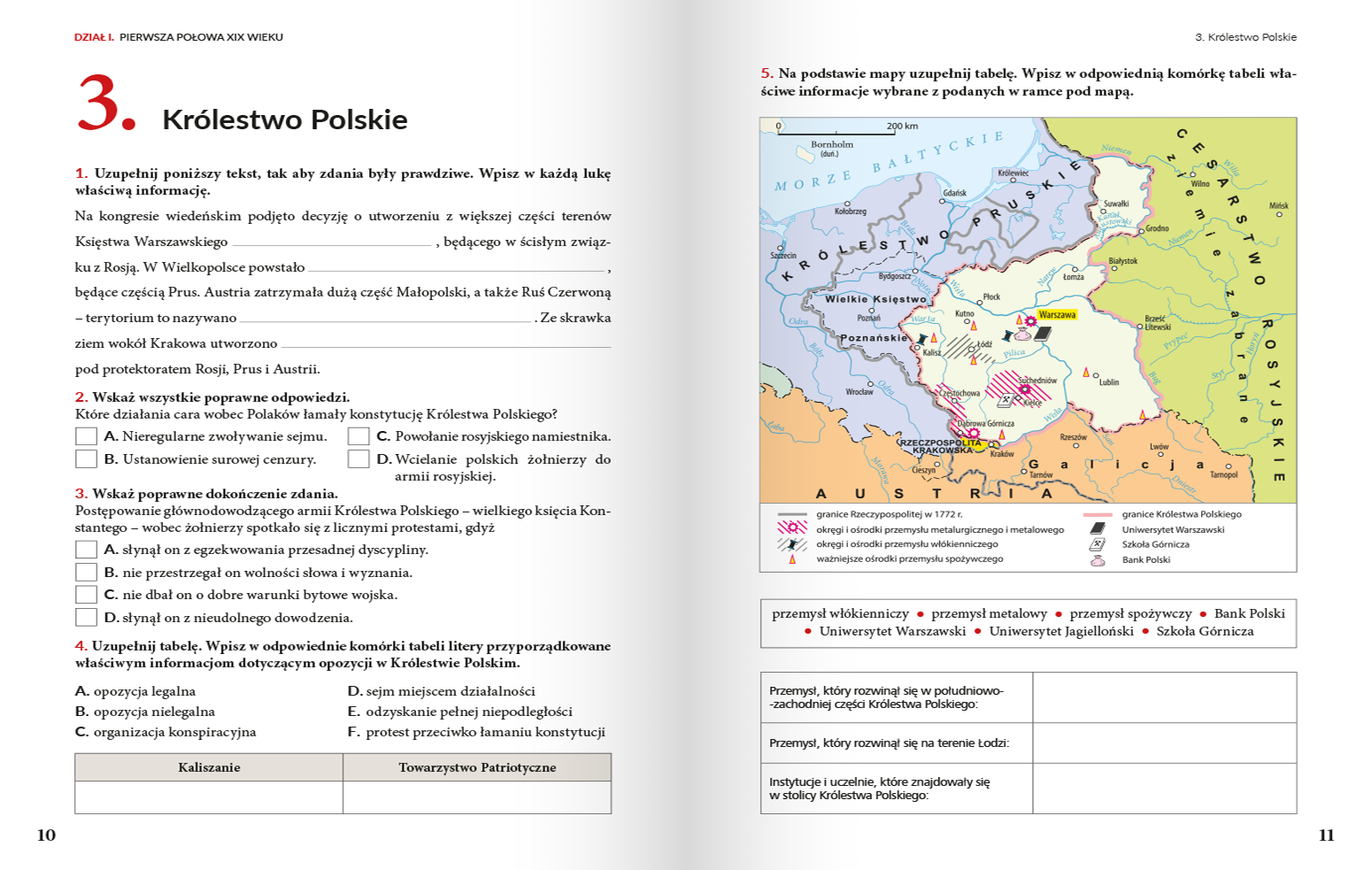 Po każdym dziale znajdują się „Lekcje powtórzeniowe”, zawierające zestawy zadań zamkniętych i otwartych, które pozwalają na kształcenie umiejętności pracy z różnymi typami materiałów źródłowych, jak: teksty, mapy, dane statystyczne, schematy.