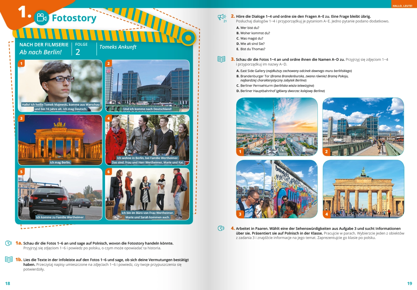 W każdym rozdziale znajduje się sekcja Fotostory. Jest to historia obrazkowa, napisana w języku niemieckim i bazująca na popularnym serialu. Do historii obrazkowej dołączone są zadania do wykonania przez uczniów.