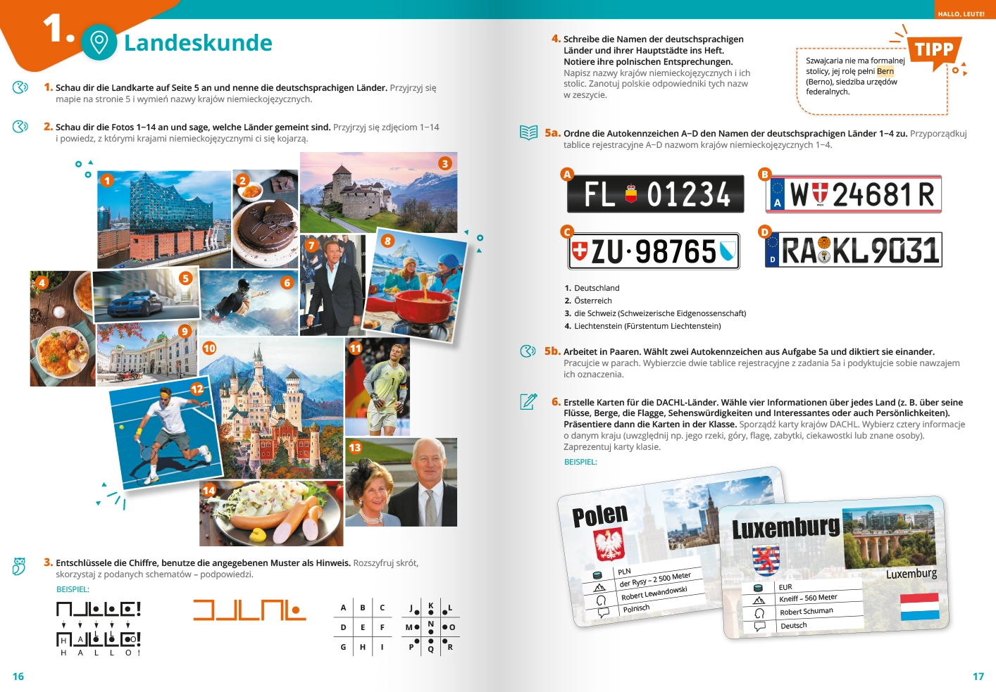 • Landeskund i Fotostory z zadaniami fakultatywnymi dla uczniów bardziej zainteresowanych krajami niemieckojęzycznymi.